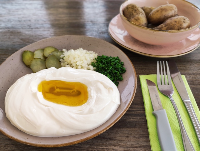 - Quark mit Pellkartoffeln und Leinöl